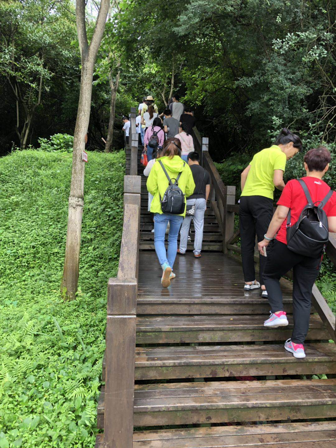 続々と上陸して、今(jīn)日の登山が始まりました。登山の歩(bù)道は旋回して山(shān)の勢いに従って、すべて板の構築です。歩道の両(liǎng)側には、草木が青々と茂り、藤がしなやかで、十分に目を潤している。同僚たちは一(yī)緒に道連れになって笑いながら、いつの間にか白雲閣の展望台に登りました。