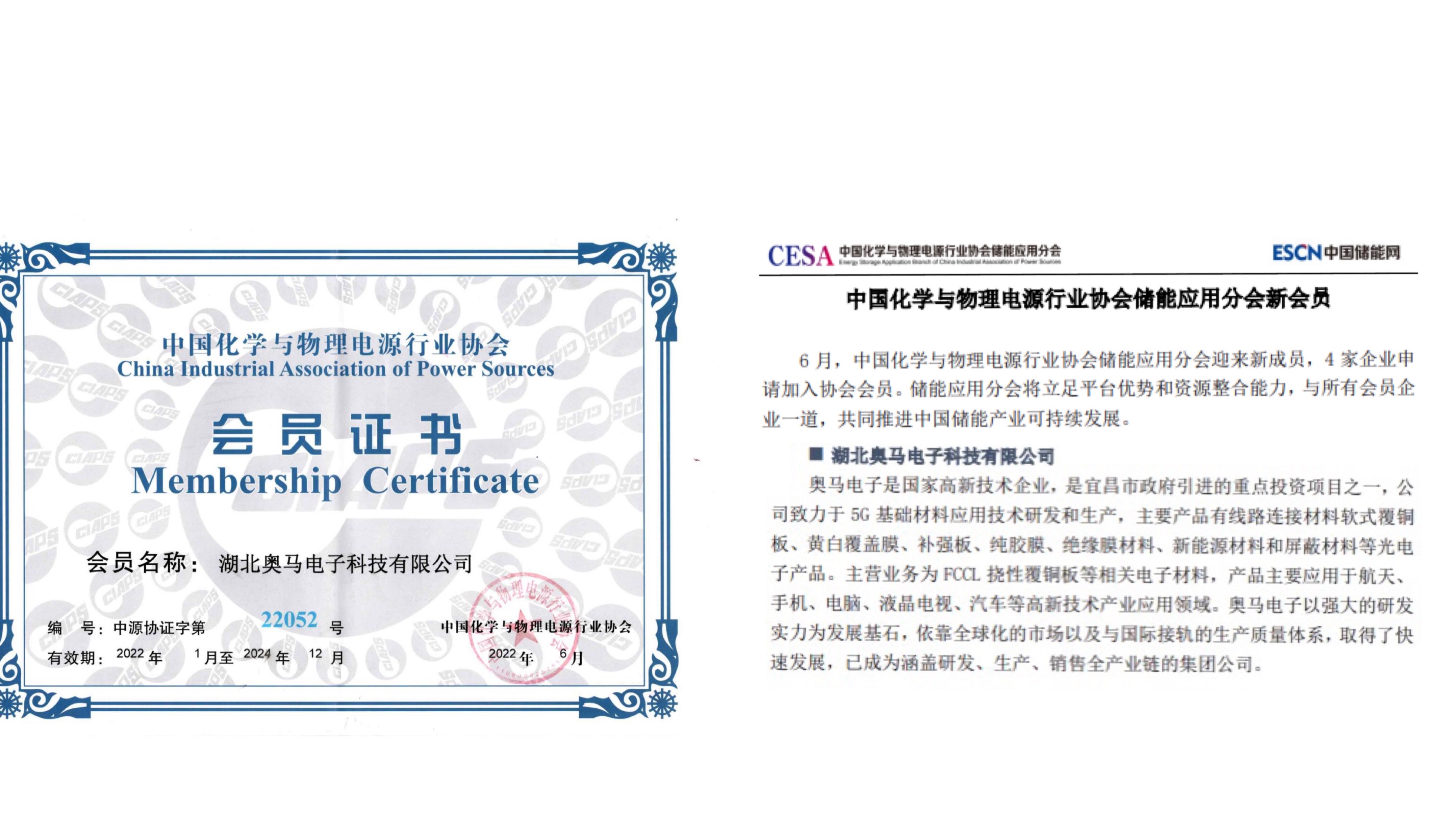 2022年6月24日,湖北91探花在线播放電子科技有限公司(以下簡稱“91探花在线播放科技”)收到由中國化學與物理電源行(háng)業協會儲能分會頒發的(de)《會員證書》。91探花在线播放科技(jì)加入中國化學與物理電源行(háng)業協會儲能分會,有助於公司發揮戰略優勢,形成持續創新機製,提(tí)高公司的核心競爭力。公司將持續為新能源汽車(chē)動力電池、儲能電池用等生產與建設提供柔(róu)性材料。截至目(mù)前91探花在线播放科技是唯一一家被(bèi)納入儲能協會(huì)的柔性FCCL、CVL材料的(de)企業,這也標誌著公司的(de)高端柔性材料開(kāi)始全麵進入儲能領域。